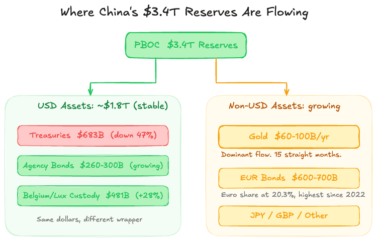 Last week, Chinese regulators told banks to limit new purchases of US Treasuries and reduce exposure. This comes after China’s Treasury holdings fell to $682.6 billion in November 2025. 17-year low. Down 47% from the $1.32 trillion peak. They dropped to 3rd largest foreign holder behind Japan and the UK for the first time in 17+ years. The narrative everywhere: China is dumping Treasuries. De-dollarization is accelerating. Buy gold, sell bonds. I'm fascinated by investing x geopolitics, so I started digging into this. If China is genuinely moving away from Treasuries, the implications for the US are massive, both economically and geopolitically. Dollar reserve status, US borrowing costs, the world order. Not small questions. But I think the market is misreading this story. If China is pulling hundreds of billions out of Treasuries … where is that money going? And are there assets that could be mispriced? Tracking sovereign capital flows manually is a multi-day project: US Treasury data, PBOC disclosures, World Gold Council reports, IMF data, sell-side desks. I built a two-prompt chain that does this in about 15 minutes.