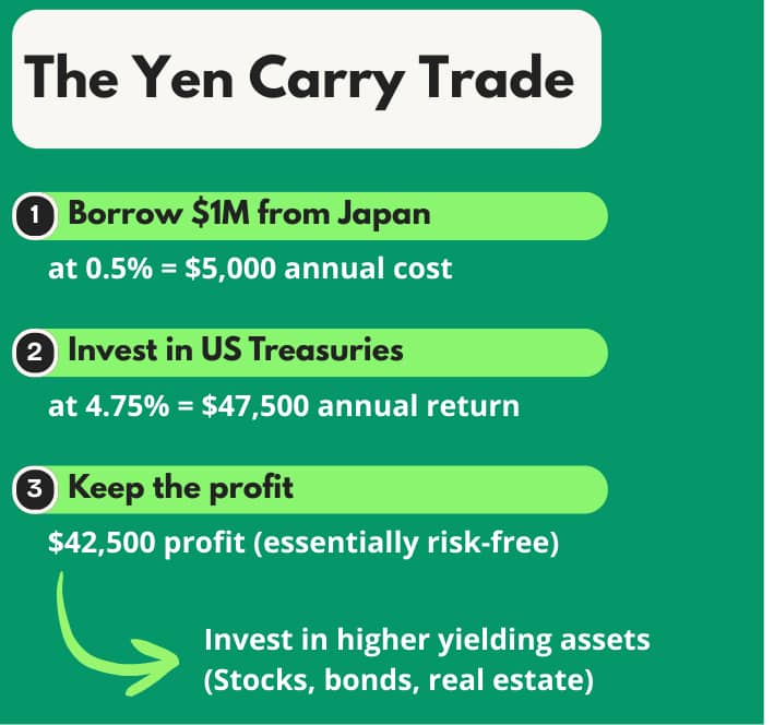 Japan Just Triggered a Global Market UnwindI used Claude to map what breaks, what rotates, and how to position ↓For two decades, there was a cheat code in global finance. Borrow yen at zero. Convert to dollars. Buy U.S. Treasuries yielding 4-5%. Pocket the spread. Rinse. Repeat. Get rich. This was the yen carry trade. At its peak, exposure reached an estimated $1-2 trillion in direct positions, and multiples of that when you include derivatives and balance sheet effects. (Nobody knows the real number. That’s part of the problem.) Hedge funds ran it. Pension funds ran it. Japanese life insurers ran it. So consistent. So boring. So profitable. Then the math broke. The ProblemJapan kept rates at zero because their economy was stuck. Real estate bubble popped in the 1990s. Deflation set in. The Bank of Japan bought bonds to keep rates low. For 30 years, it worked. Now it’s not. Japanese 30-year yields just hit an all-time record: 3.43%. The 10-year is at 1.90%, highest since 2006. The BOJ meets December 19th, and markets price an 80% chance they hike the policy rate again. Governor Ueda explicitly signaled it’s coming. That’s unusual. BOJ governors don’t telegraph moves. When they start talking, you listen. In 2023, the spread was 4.75%. huge profit even after hedging costs. Today it’s around 2.2%. Razor-thin or negative after hedging. The “free money” is getting expensive. When the spread compresses, the trade stops working. When the trade stops working, leveraged positions unwind. When trillions move, you feel it everywhere. In August 2024, we got a preview. BOJ hinted at tightening. Yen spiked. The Nikkei dropped 12% in one day, worst since 1987. S&P fell 3%. VIX spiked above 60. All because Japan raised rates by 0.25%. (Global finance is fun.) That was a tremor. The question now: Is the earthquake coming? How We Use AI to Map the FalloutThis is the kind of problem AI was built for. Complex. Multi-layered. Too many variables for a human to hold in their head at once. I gave Claude four questions. Each builds on the last. 1. What will the BOJ do? Policy is the trigger. Everything else follows. 2. How does this hit U.S. rates? Japan owns $1.2 trillion in Treasuries. When they stop buying, yields move in ways the Fed doesn’t control. 3. Which sectors get crushed? Some assets are directly funded by yen. Others are rate-sensitive. Others just sell because correlations spike during deleveraging. 4. What’s the rotation playbook? Capital doesn’t disappear. It moves. The PromptI built a prompt that runs this entire analysis, BOJ scenarios, rate transmission, sector exposures, rotation playbook.
